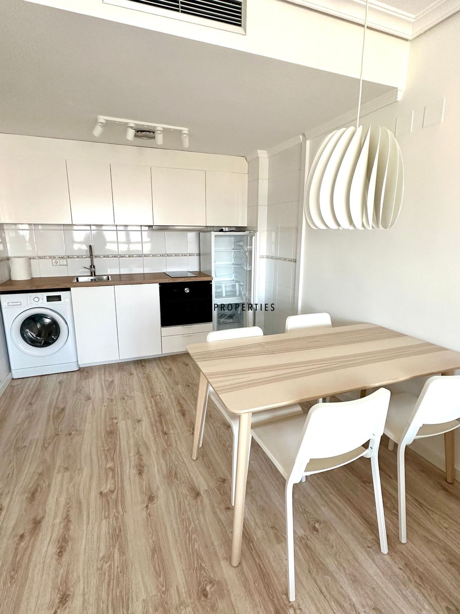 La vivienda cuenta con cocina americana integrada en el salón, creando un espacio moderno y funcional. Todos los muebles y electrodomésticos son nuevos y a estrenar: lavadora, lavavajillas, nevera, congelador, vitrocerámica y microondas. Listo para entrar a vivir.