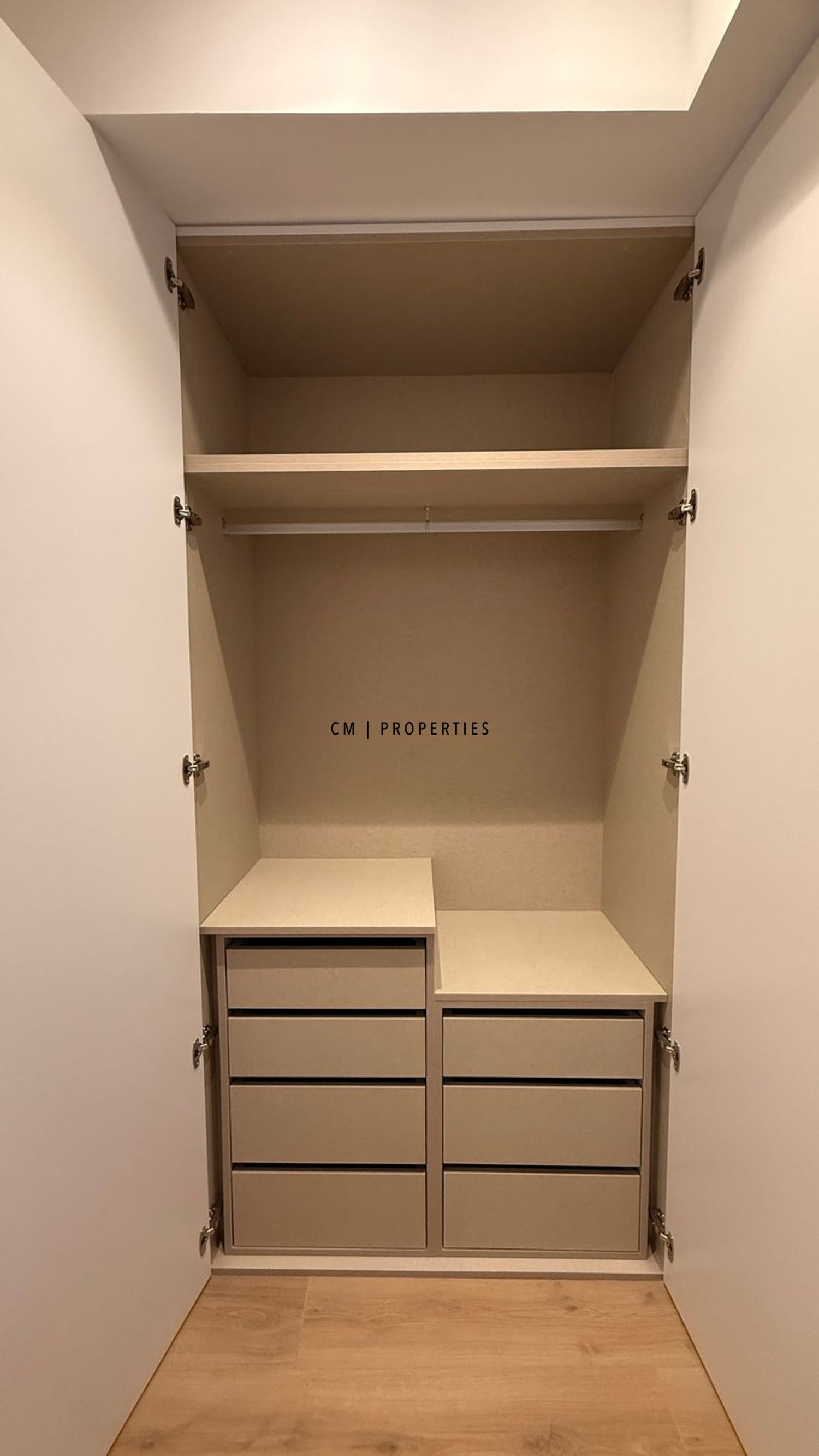 Dormitorio principal con baño en suite y armarios empotrados de suelo a techo.
