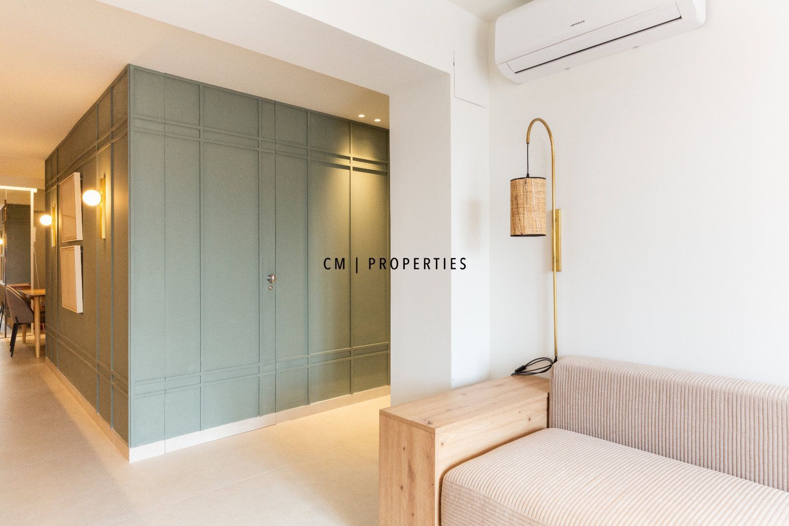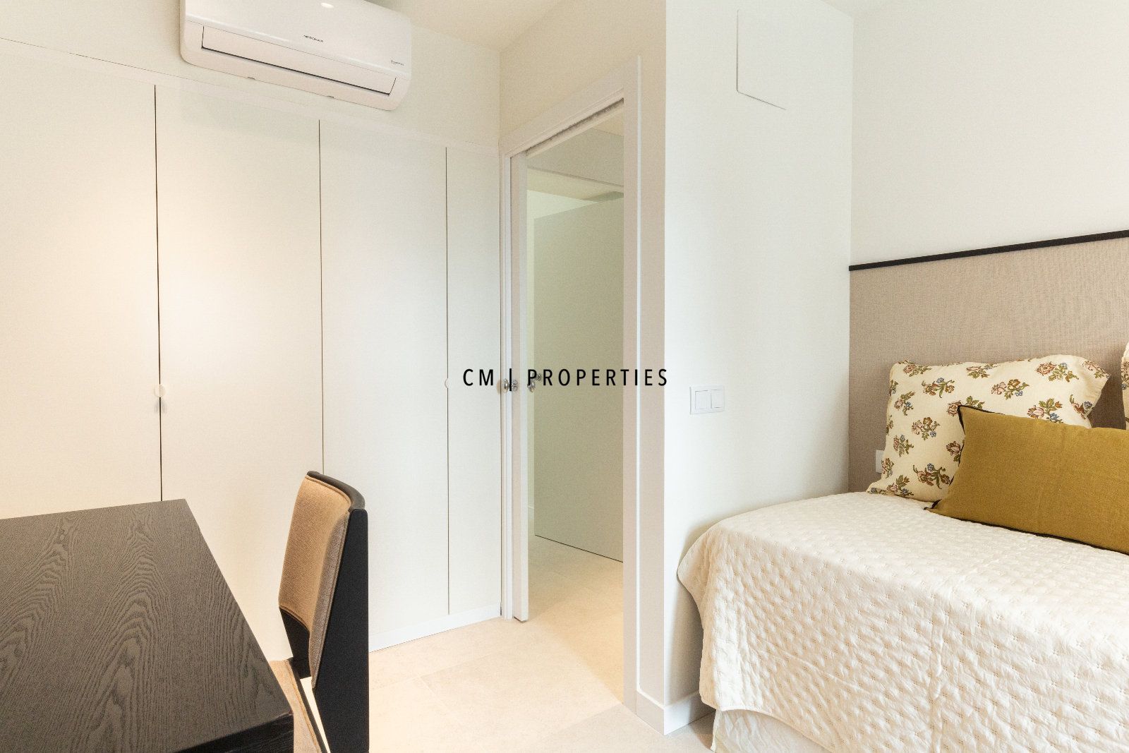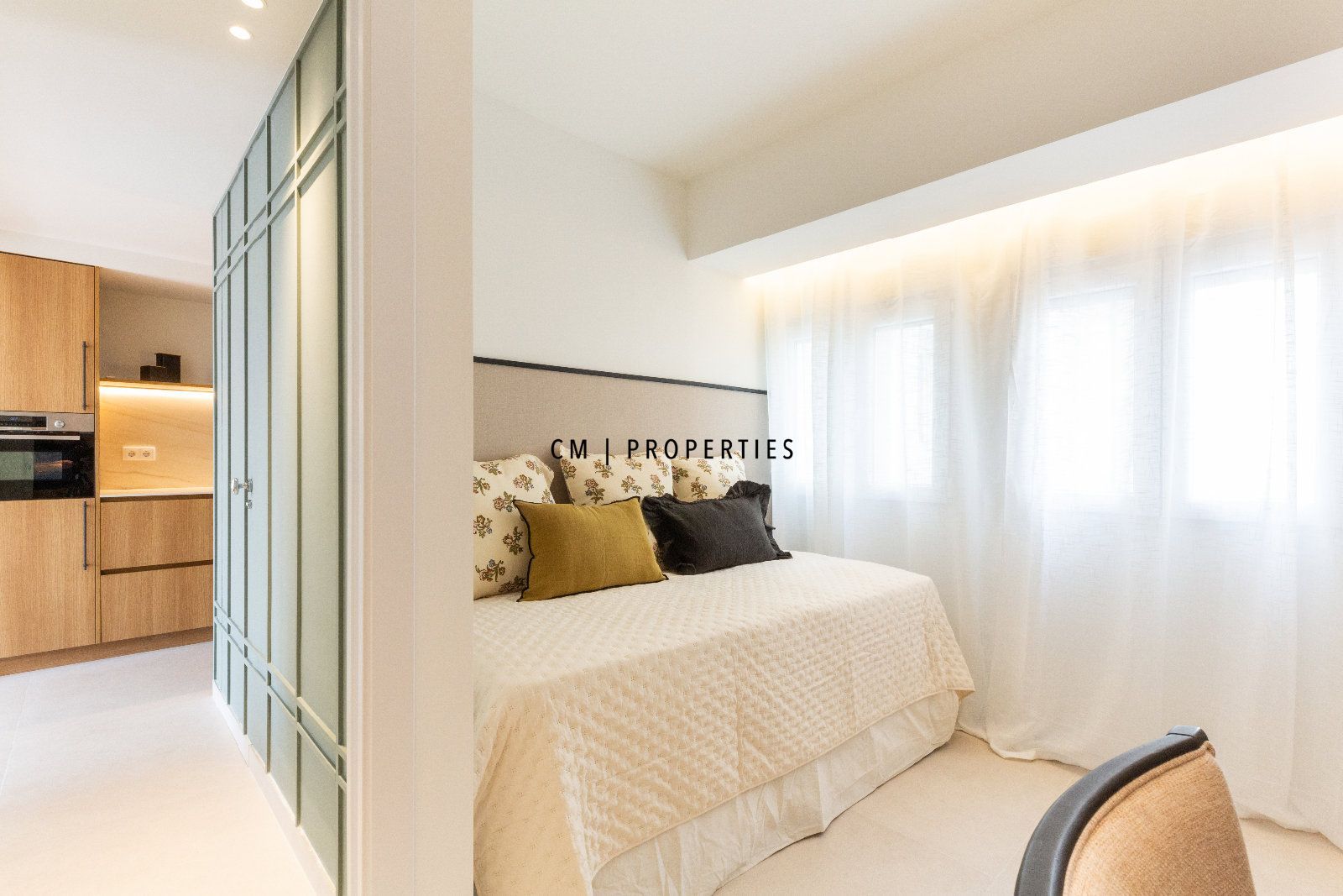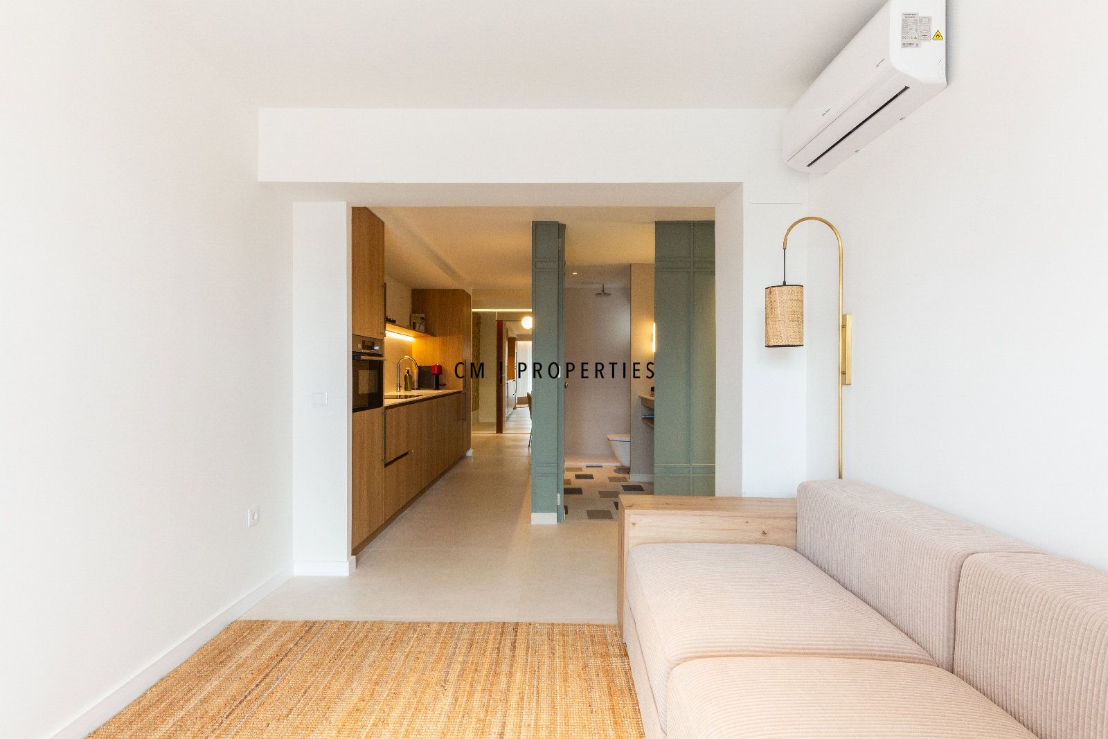 La propiedad cuenta con 73 metros cuadrados repartidos en dos habitaciones, un baño, salón-comedor, cocina tipo office y balcón. Desde la entrada accedemos a la parte principal la cual es el salón-comedor con cocina tipo office y una mesa para 4 comensales. El salón es muy luminoso gracias a su gran ventanal y acceso al balcón. La cocina cuenta con todos los electrodomésticos de alta gama. Por el pasillo primero encontramos el primer baño con ducha; seguidamente al final del pasillo encontramos las dos habitaciones con cama de 150cm y con armarios empotrados. La propiedad esta equipada con suelo cerámico, aire acondicionado por conductos Frio/Calor y ventanas de doble cristal con rotura del puente térmico y acústico. La finca cuenta con ascensor.