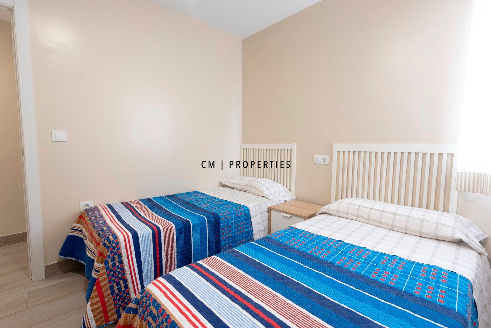 La segunda habitación dispone de dos camas individuales y armario empotrado, siendo un espacio funcional y cómodo, ideal como dormitorio juvenil, habitación de invitados o despacho.