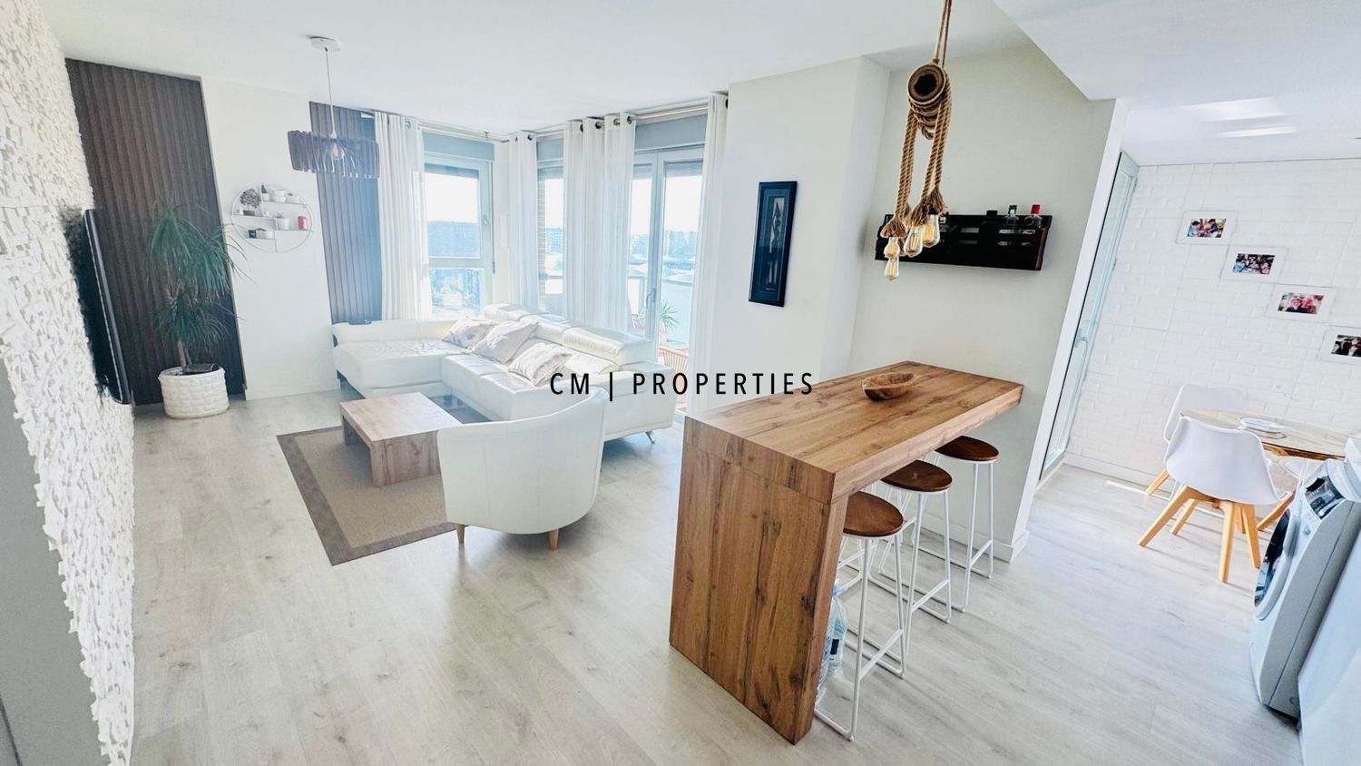 La cocina, totalmente equipada, se integra en un moderno espacio abierto junto al salón-comedor, creando un ambiente amplio y acogedor, ideal tanto para el día a día como para disfrutar de momentos en familia o con amigos. Desde el salón se accede a una magnífica terraza de 10 m², perfecta para relajarse y disfrutar de las vistas despejadas.