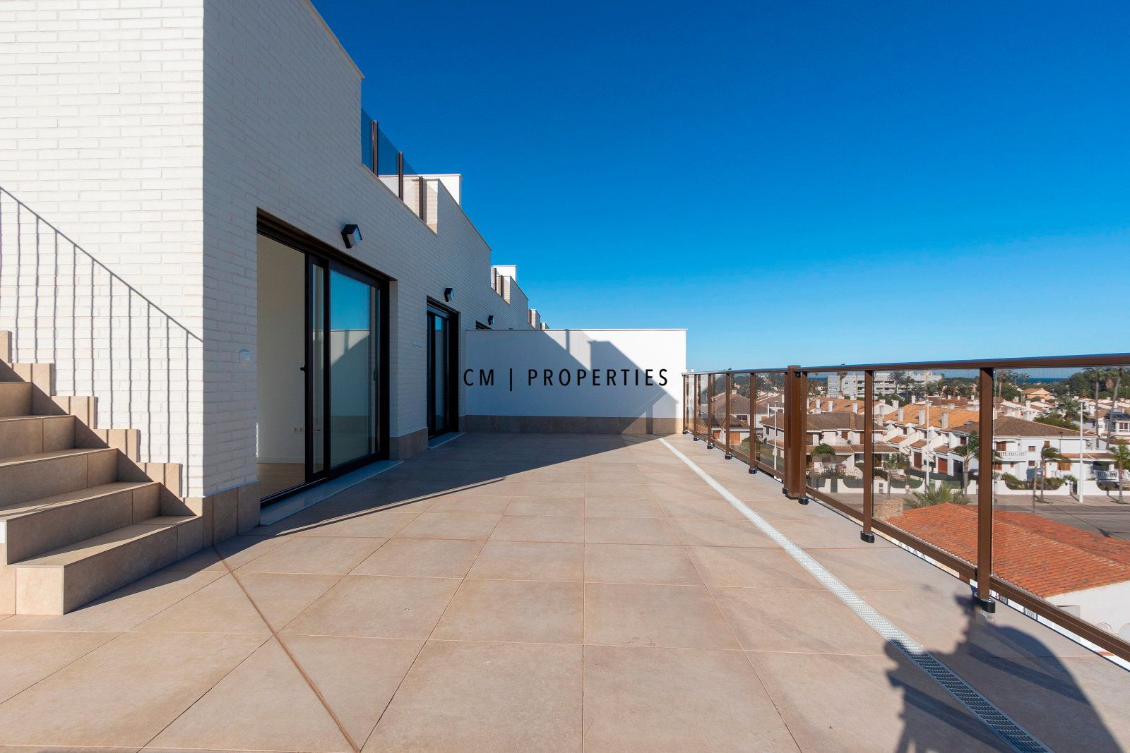 En la planta superior, encontramos una fantástica terraza solárium privada, un espacio perfecto para relajarse y disfrutar del entorno mediterráneo con total privacidad.