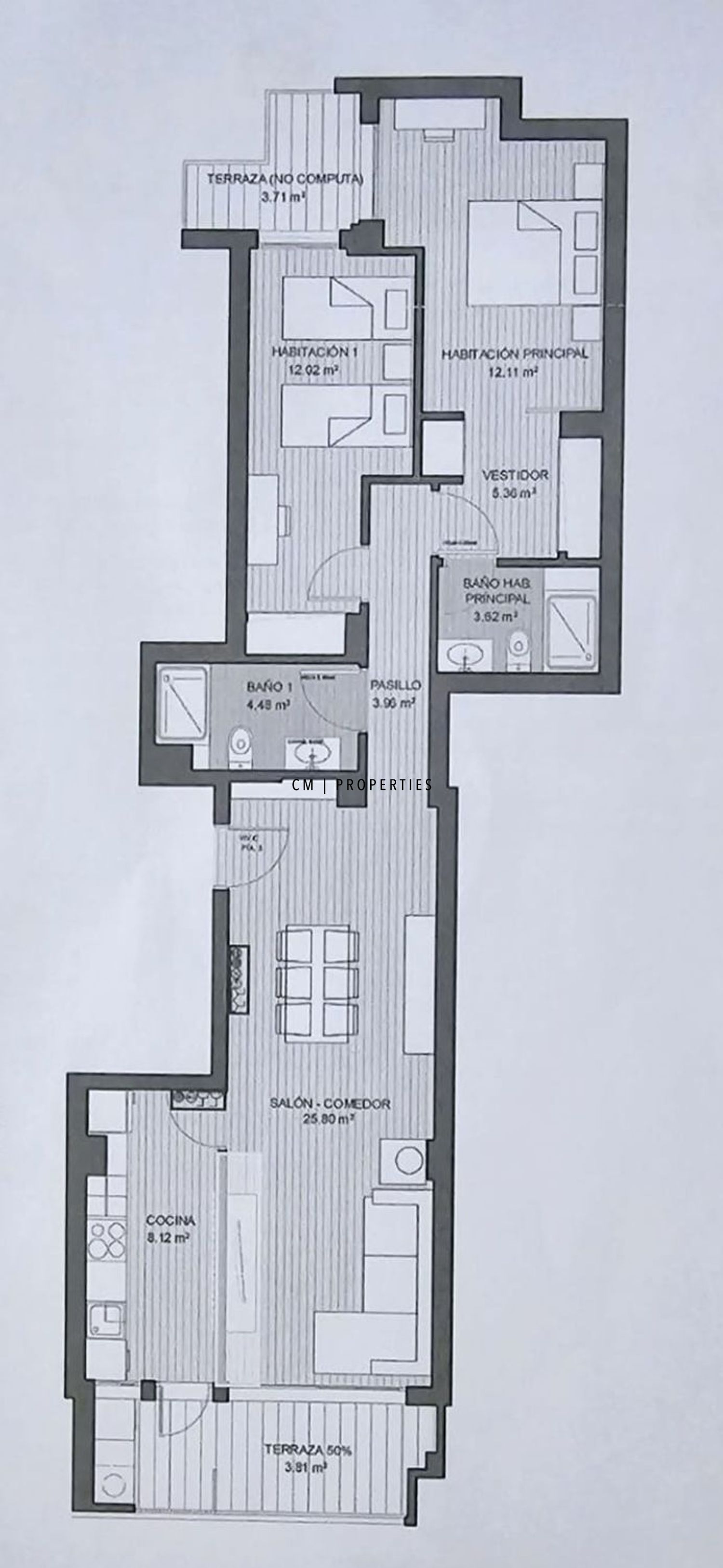 La propiedad se sitúa en la primera planta de un edificio con ascensor, y cuenta con 91 m² construidos (103 m² con zonas comunes), diseñados con un estilo moderno, funcional y lleno de luz natural gracias a su orientación este.