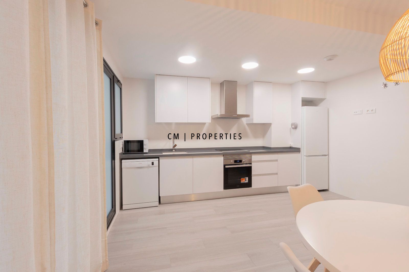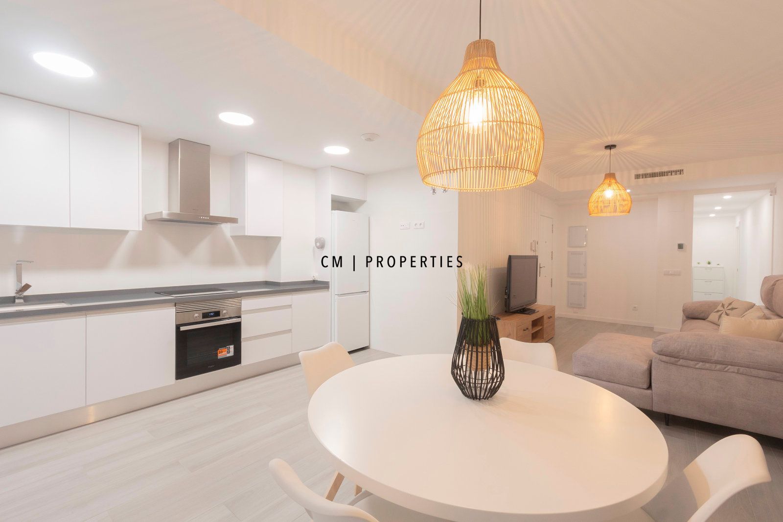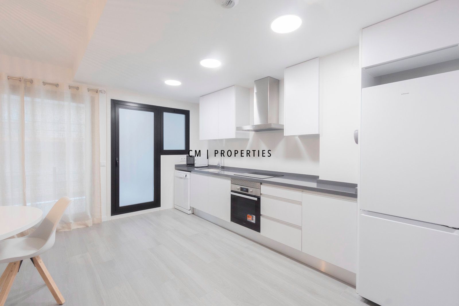 Amplio salón-comedor con cocina integrada de concepto abierto, perfectamente equipada y con acceso directo a dos terrazas privadas, ideales para disfrutar del aire libre, desayunos soleados o cenas al fresco.