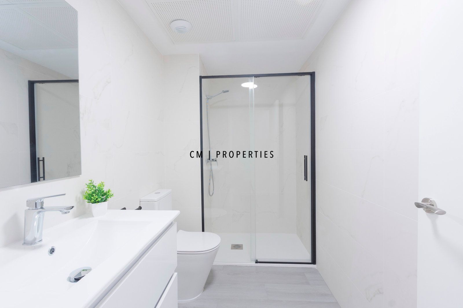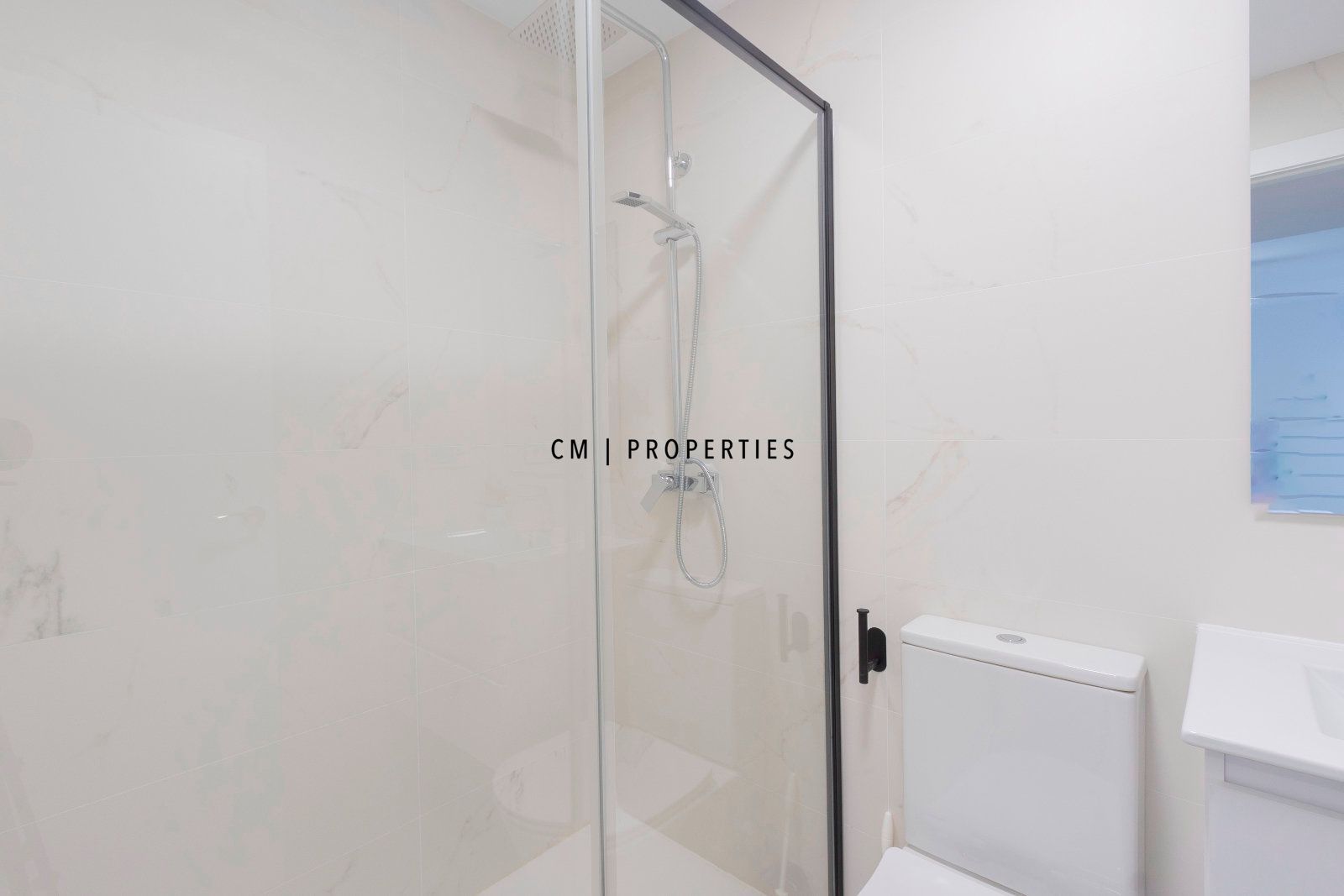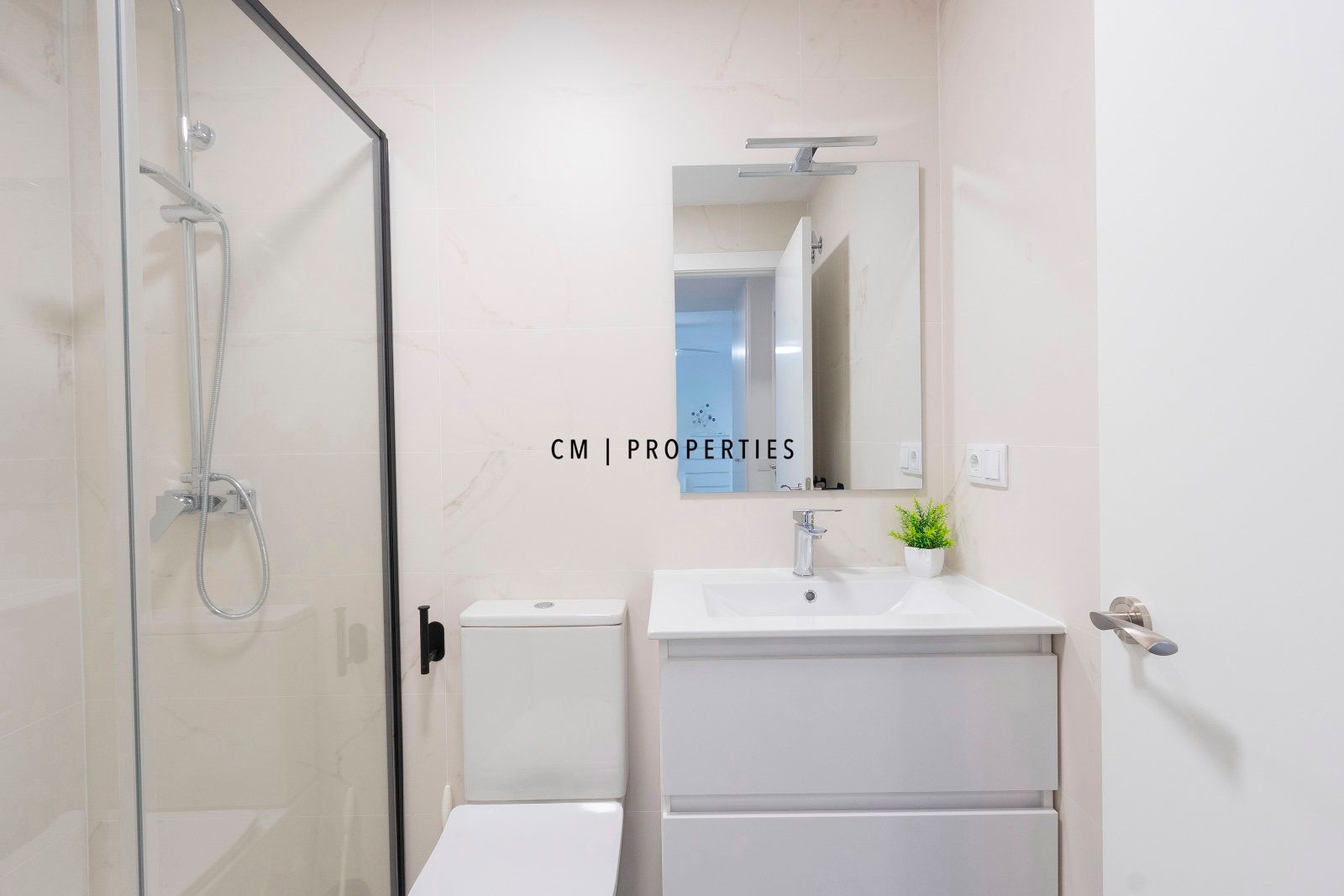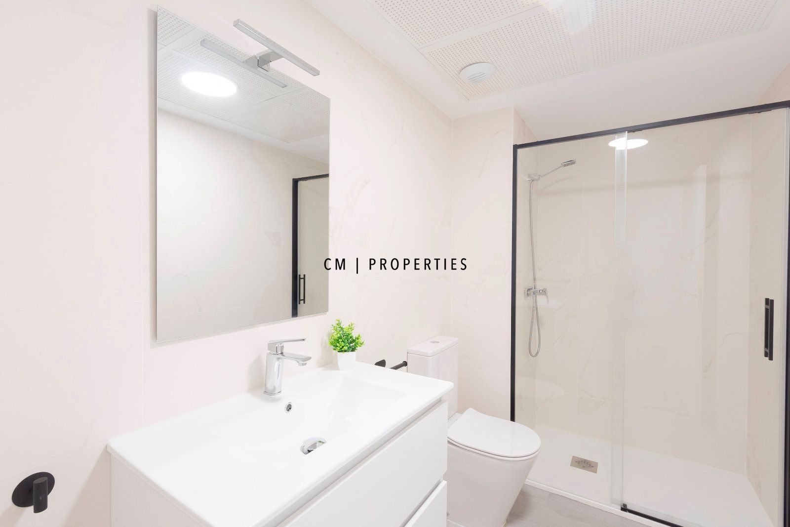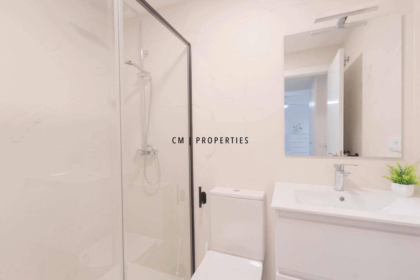 Dos baños completos, ambos con modernos platos de ducha y elegantes mamparas de diseño italiano.