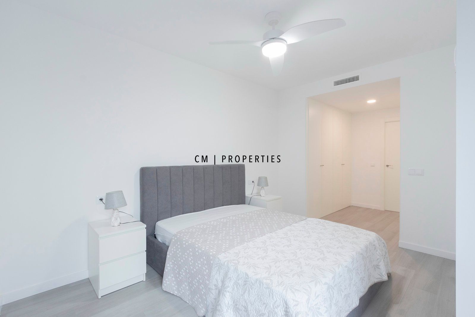 Dormitorio principal tipo suite con un gran vestidor y armarios a medida, que aportan máxima comodidad y capacidad de almacenamiento.