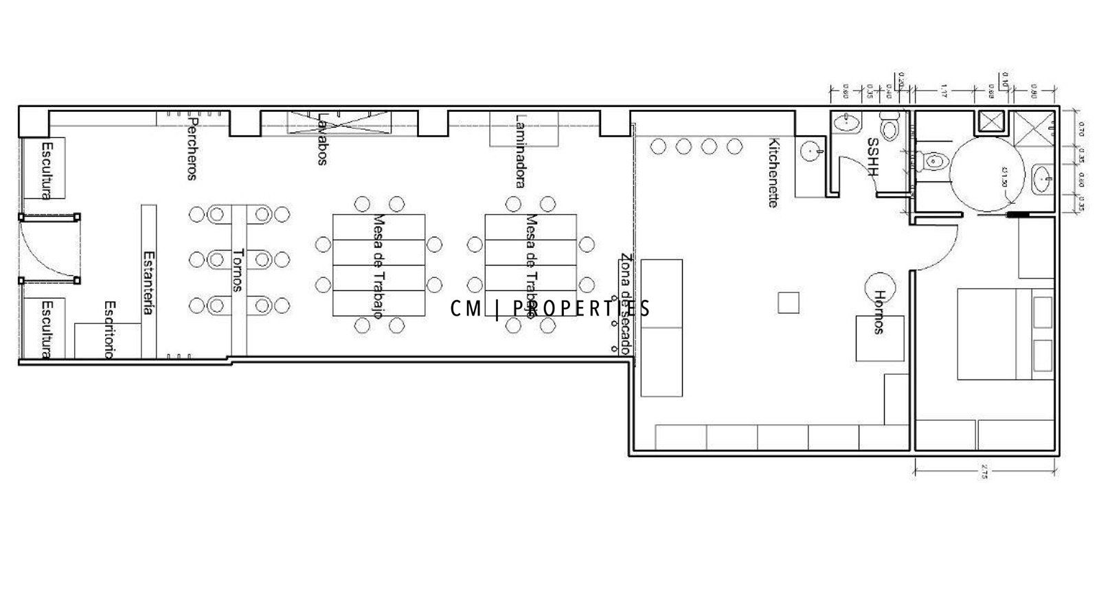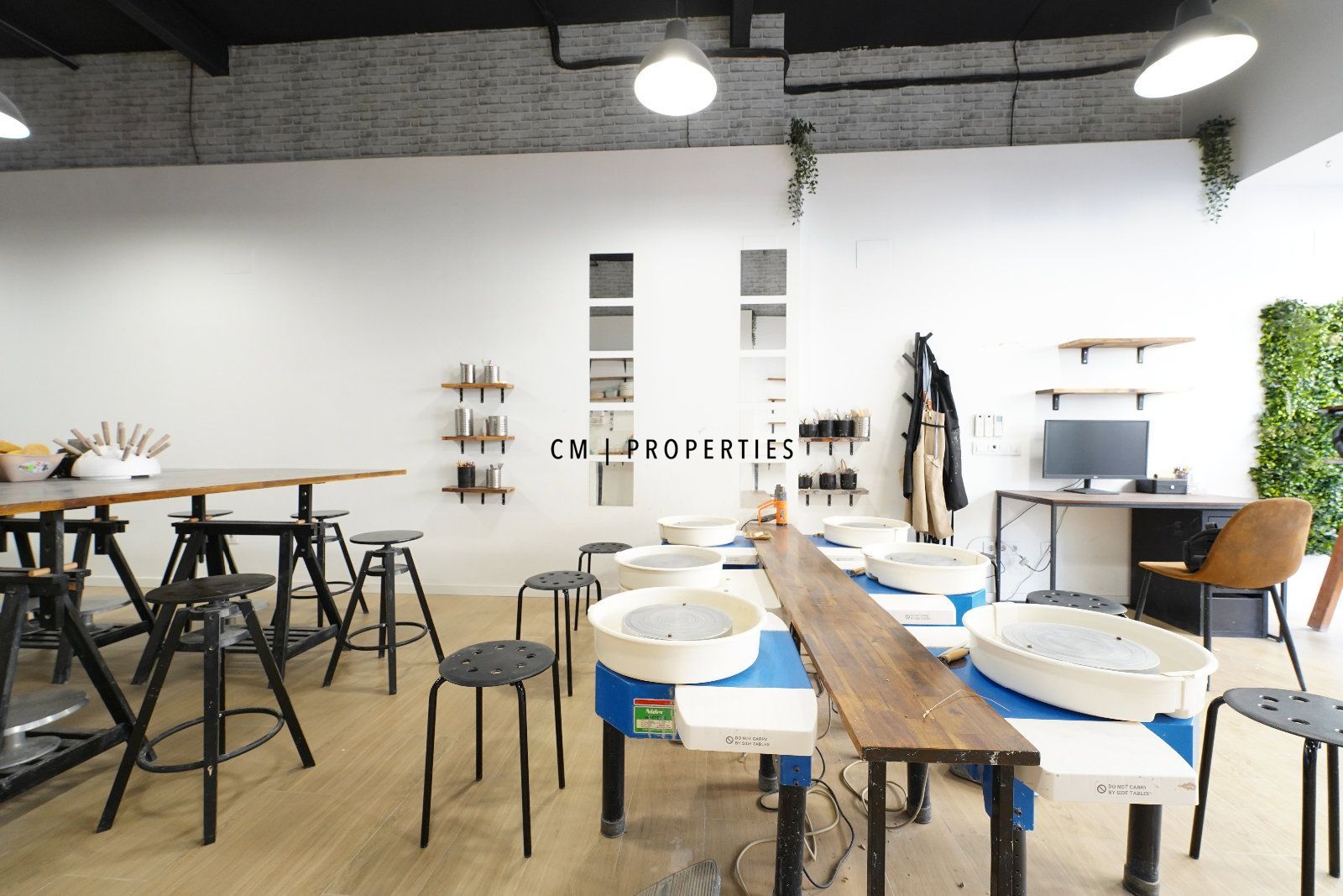 Actualmente funciona como estudio de cerámica, aunque se entrega libre de equipamiento, listo para adaptarse a cualquier tipo de actividad: retail, showroom, galería, oficina, estudio creativo, entre otros.