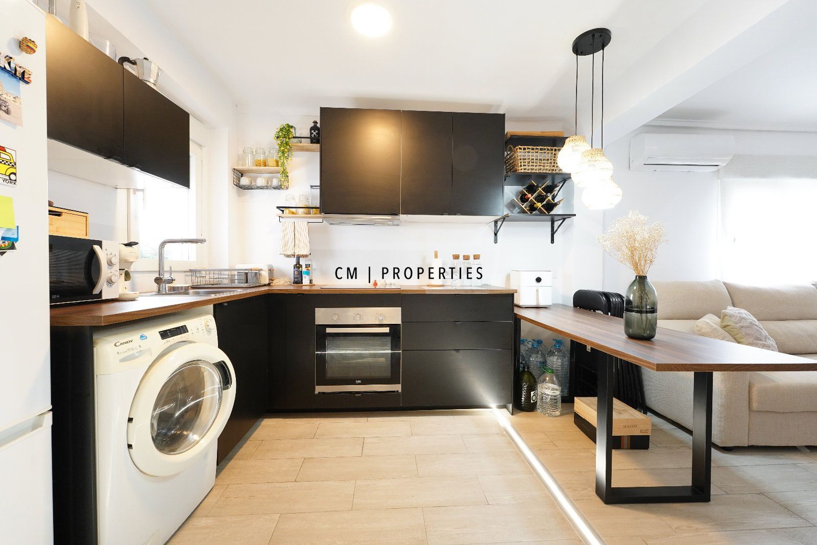 CM Properties presenta esta acogedora vivienda de 76 m² según catastro. Totalmente reformada y lista para entrar a vivir, destaca por su cuidado diseño y su moderno juego de iluminación artificial, que aporta calidez y personalidad a cada estancia.