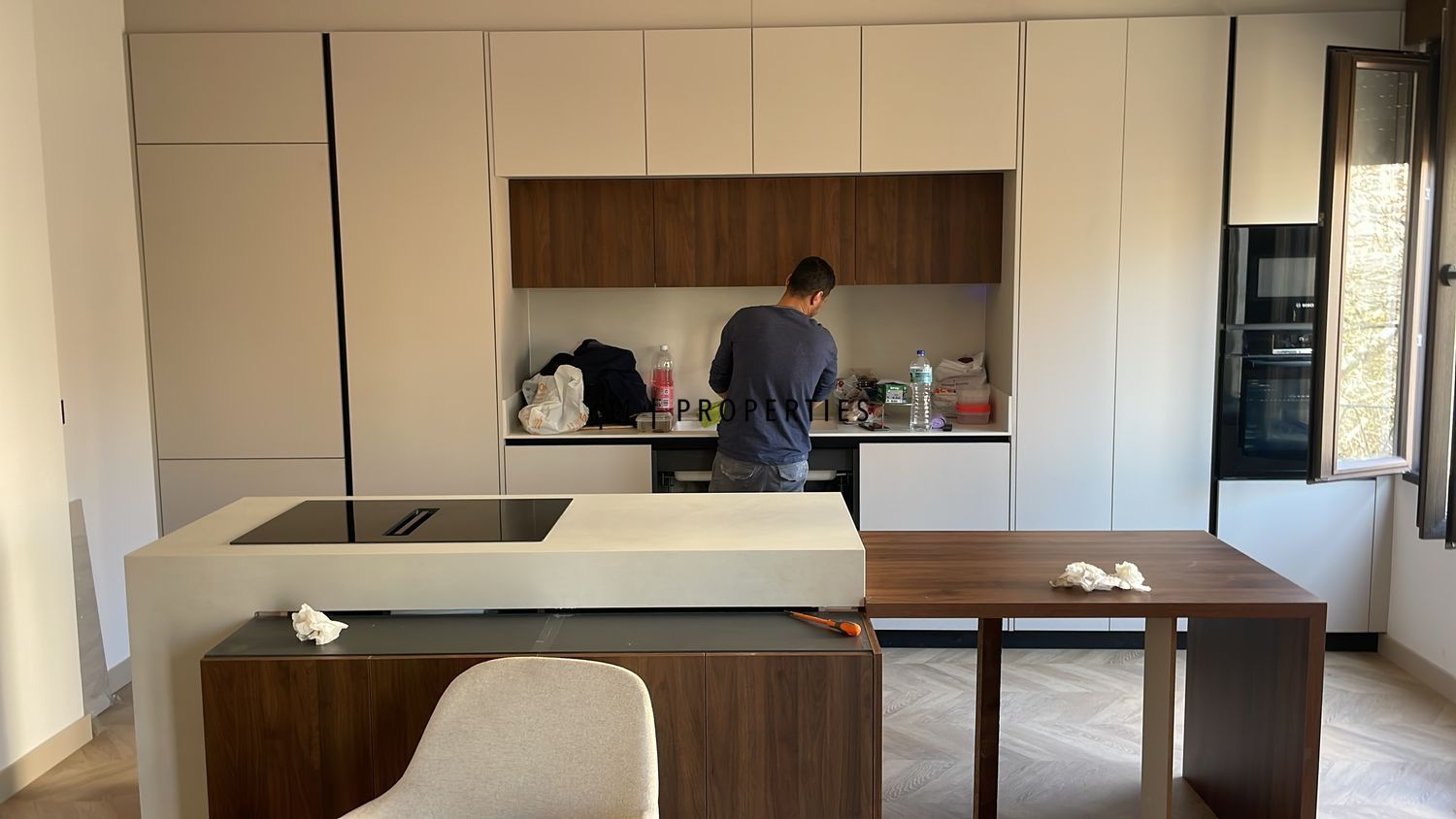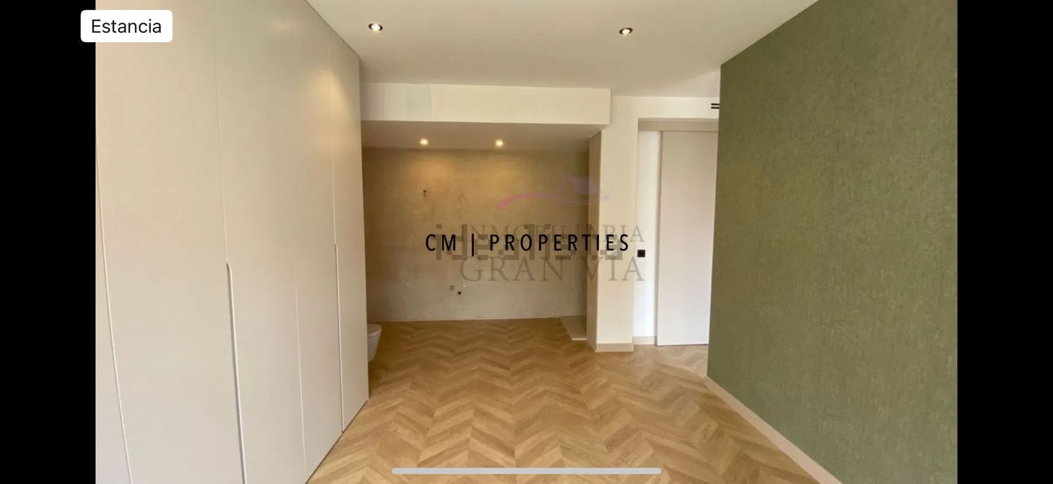 El piso destaca por su luminosidad, amplitud y diseño contemporáneo. Dispone de una moderna cocina office con isla central, totalmente equipada con electrodomésticos de alta gama, que se integra en un espacioso salón-comedor con salida a un balcón con vistas a la Gran Vía.