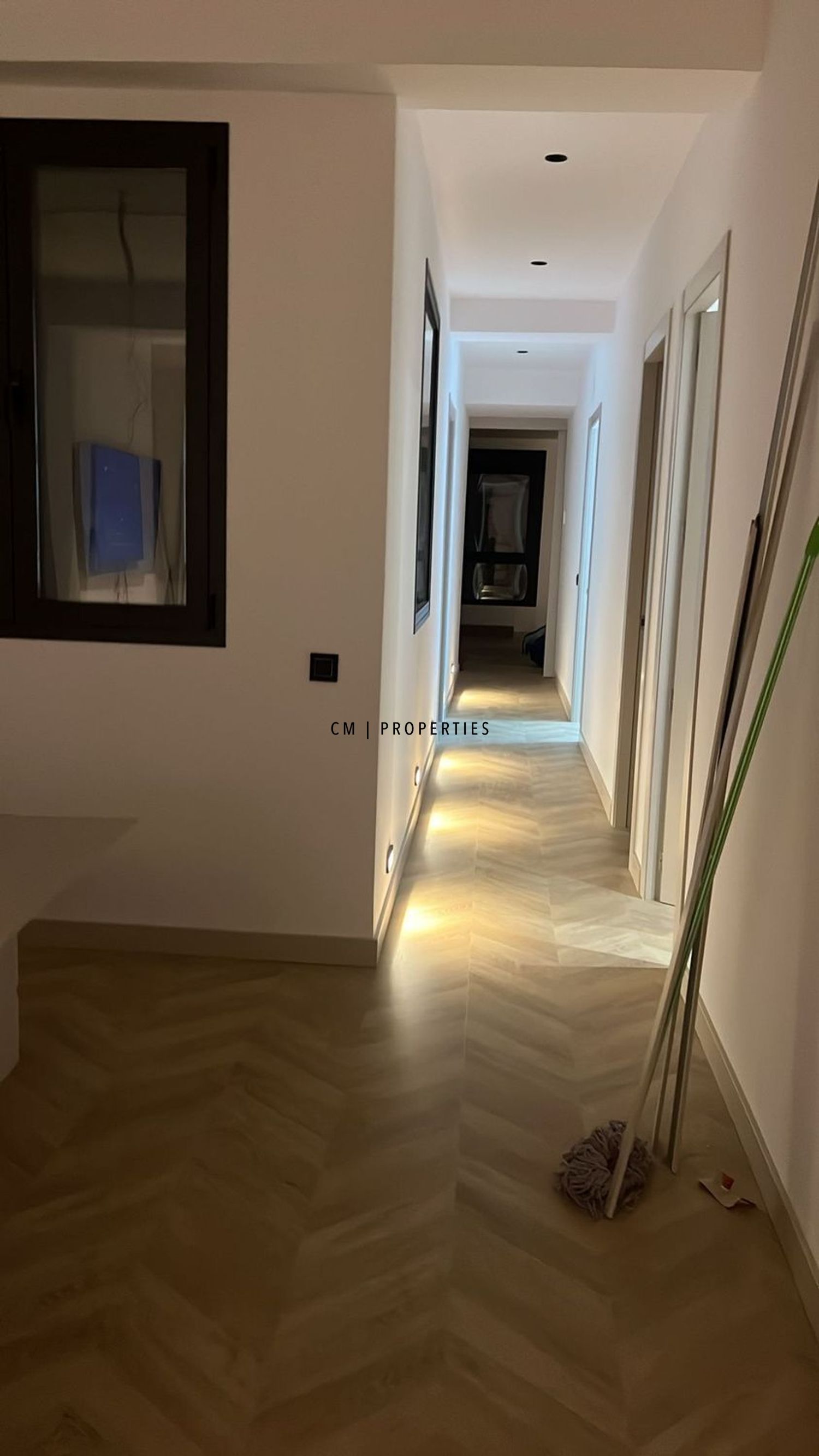 Cuenta con tres habitaciones, dos baños completos, un cuarto de servicio y un gran vestidor de diseño. La reforma se ha realizado con materiales y acabados de primera calidad: suelos de madera natural, carpintería exterior con aislamiento térmico y acústico, climatización por conductos y una cuidada iluminación LED que resalta cada espacio.