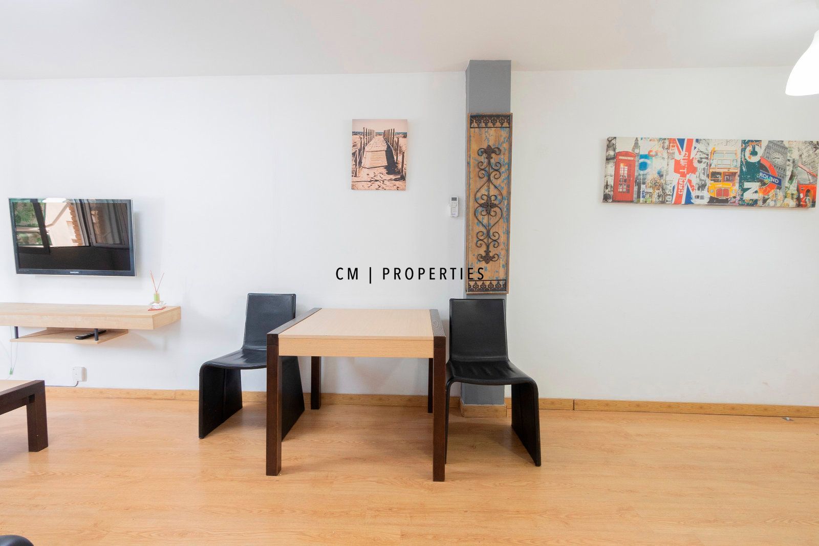 El suelo de parquet aporta calidez a todas las estancias, mientras que el aire acondicionado garantiza confort durante todo el año.