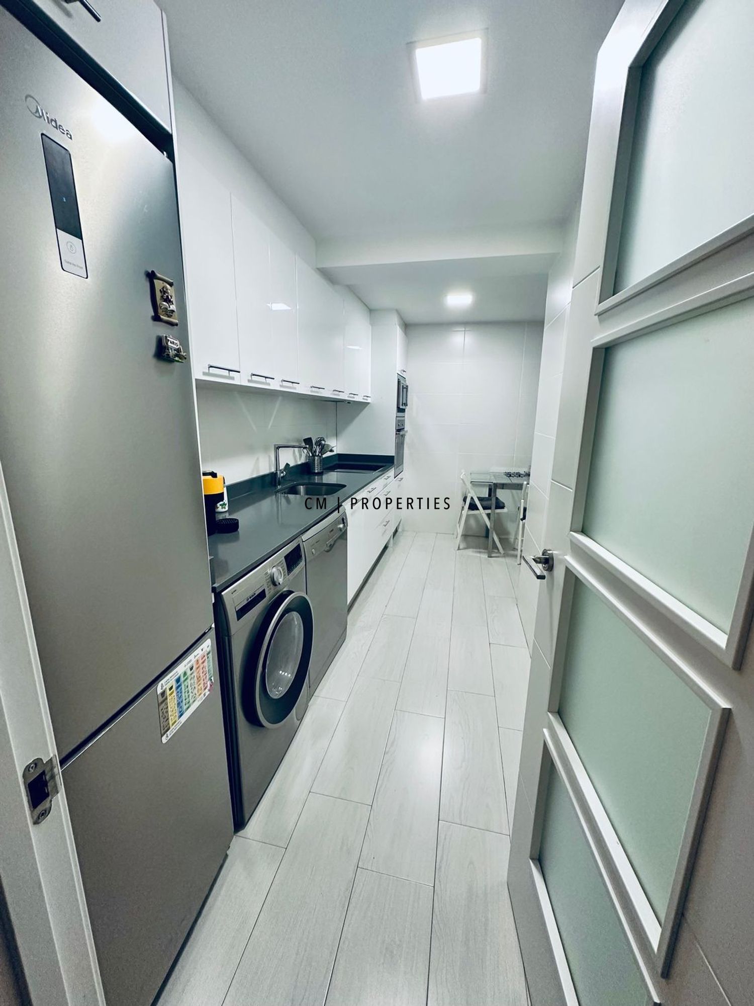 El piso está totalmente reformado en 2014, paredes aisladas con pladur, ventanas PVC, parquet puertas lacadas blancas, sanitarios de la marca roca, la bancada de la cocina es silestone.