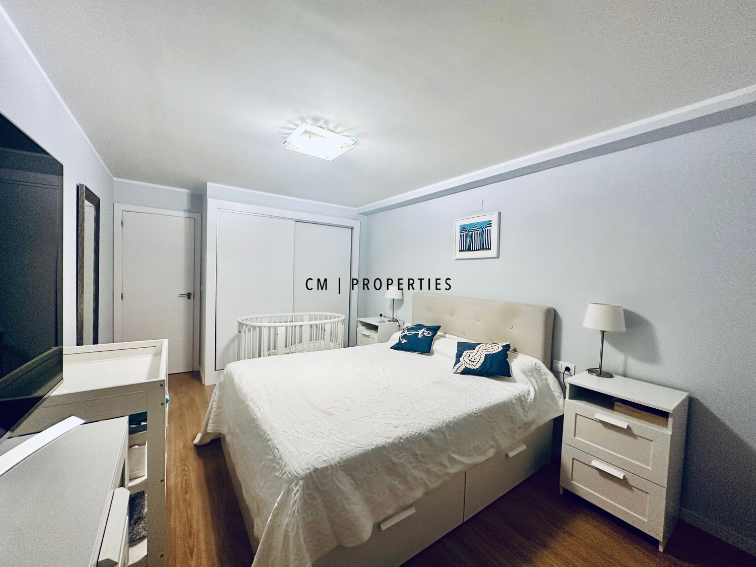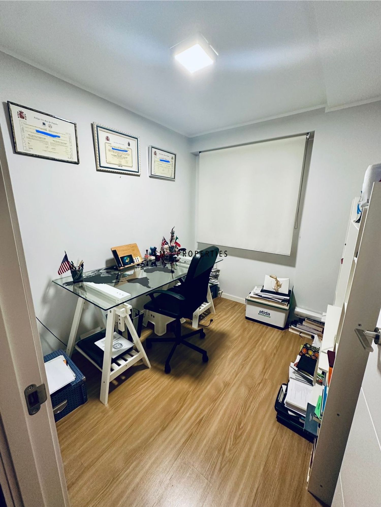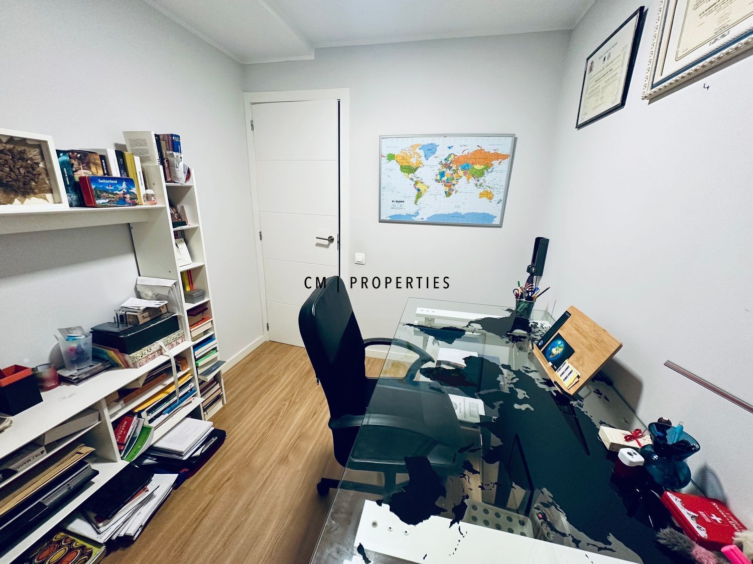El piso está compuesto por 3 habitaciones grandes y una tamaño más reducido dedicado al despacho. El salón y dos de las habitaciones dan a la avenida del puerto y las otras dos al patio interior.