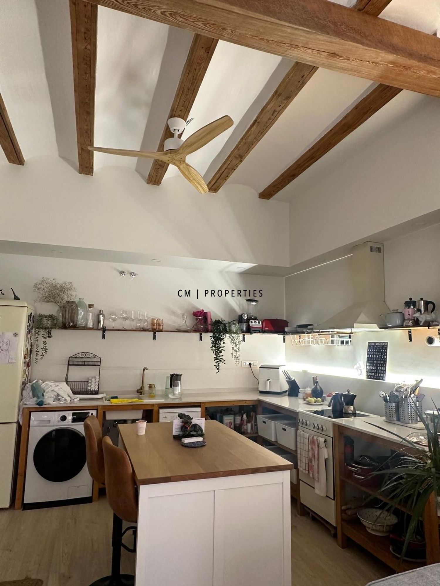El piso se encuentra semi amueblado y dispone de electrodomésticos, entre ellos lava-secadora, nevera combi y lavavajillas, además de ventiladores y aire acondicionado, garantizando comodidad desde el primer día. Existe opción de alquilar la vivienda sin muebles, adaptándose así a las necesidades del inquilino.