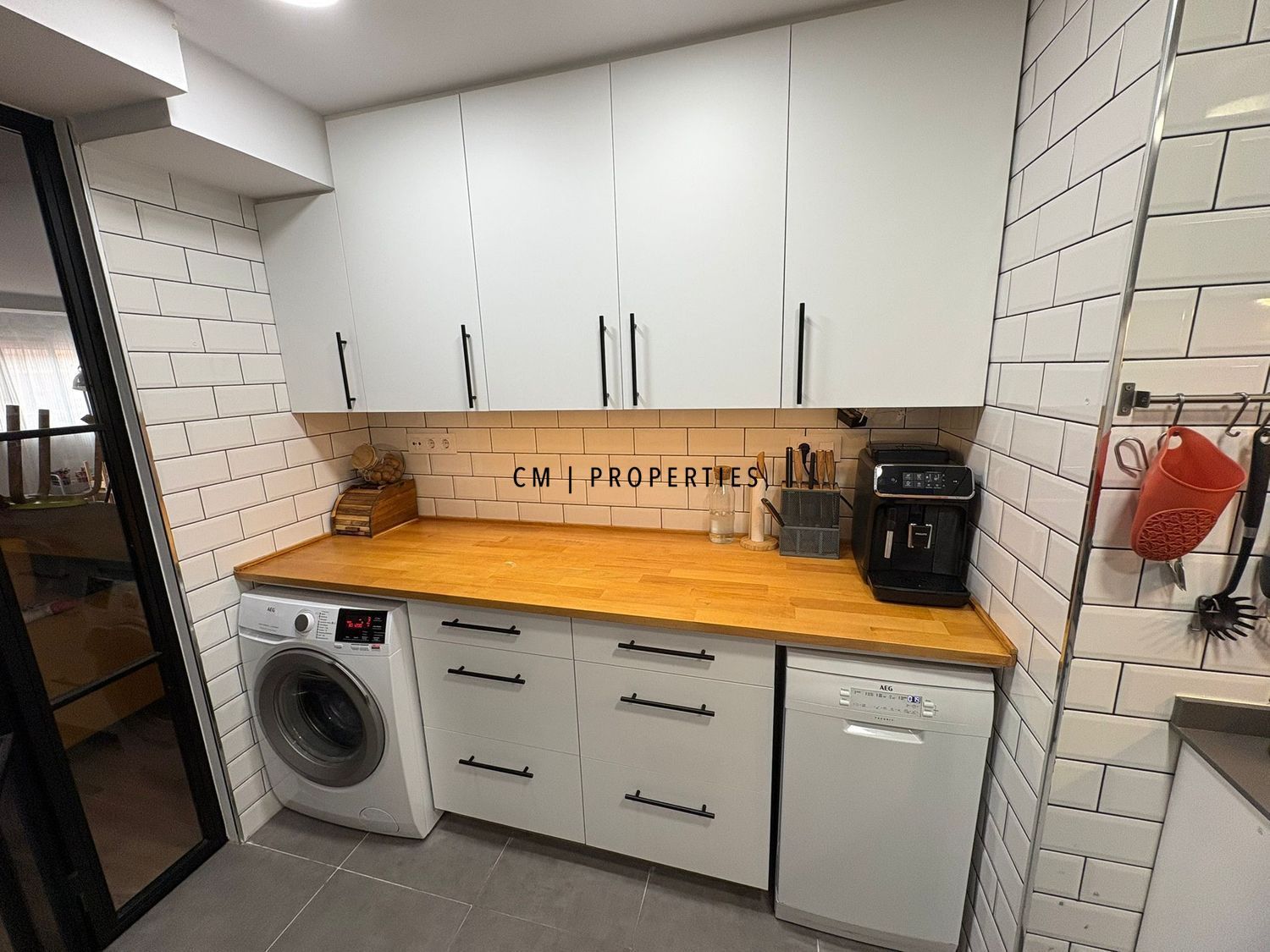 La cocina, moderna y totalmente equipada con electrodomésticos AEG, incluye además sistema de ósmosis y descalcificador de 100 litros.
