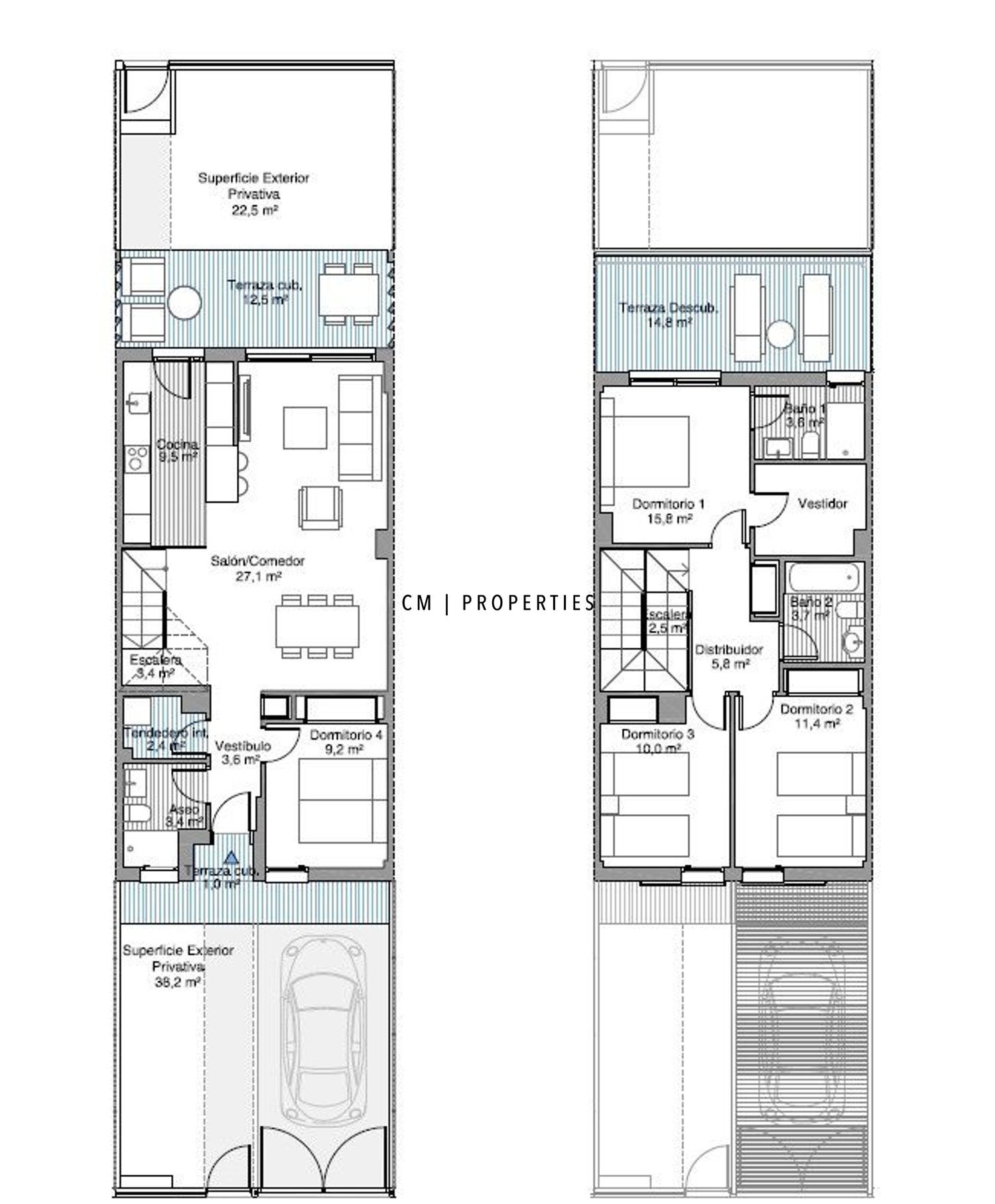 En la parte exterior, la vivienda dispone de una entrada ajardinada y una terraza cubierta en planta baja. Desde aquí se accede al jardín privado de 75 m², con salida directa a las zonas comunes: un auténtico privilegio para familias.