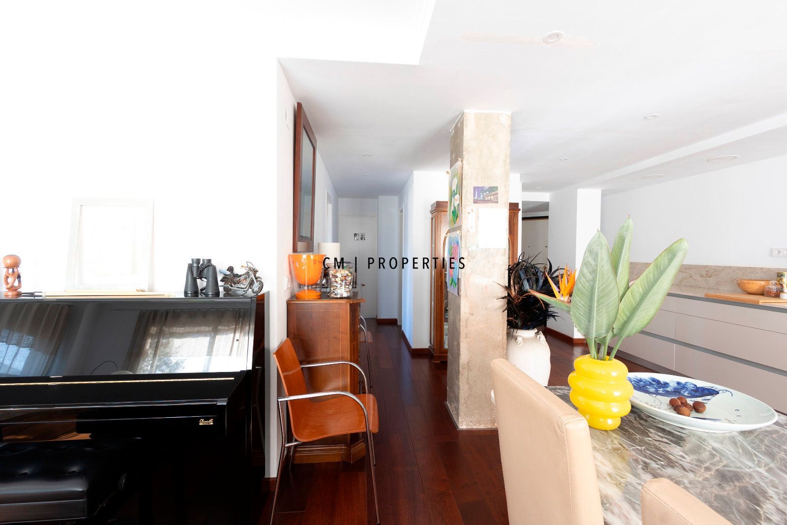 La propiedad cuenta con un amplio espacio diáfano que integra salón, comedor y cocina, creando un ambiente contemporáneo, elegante y muy funcional, ideal tanto para el día a día como para recibir invitados.