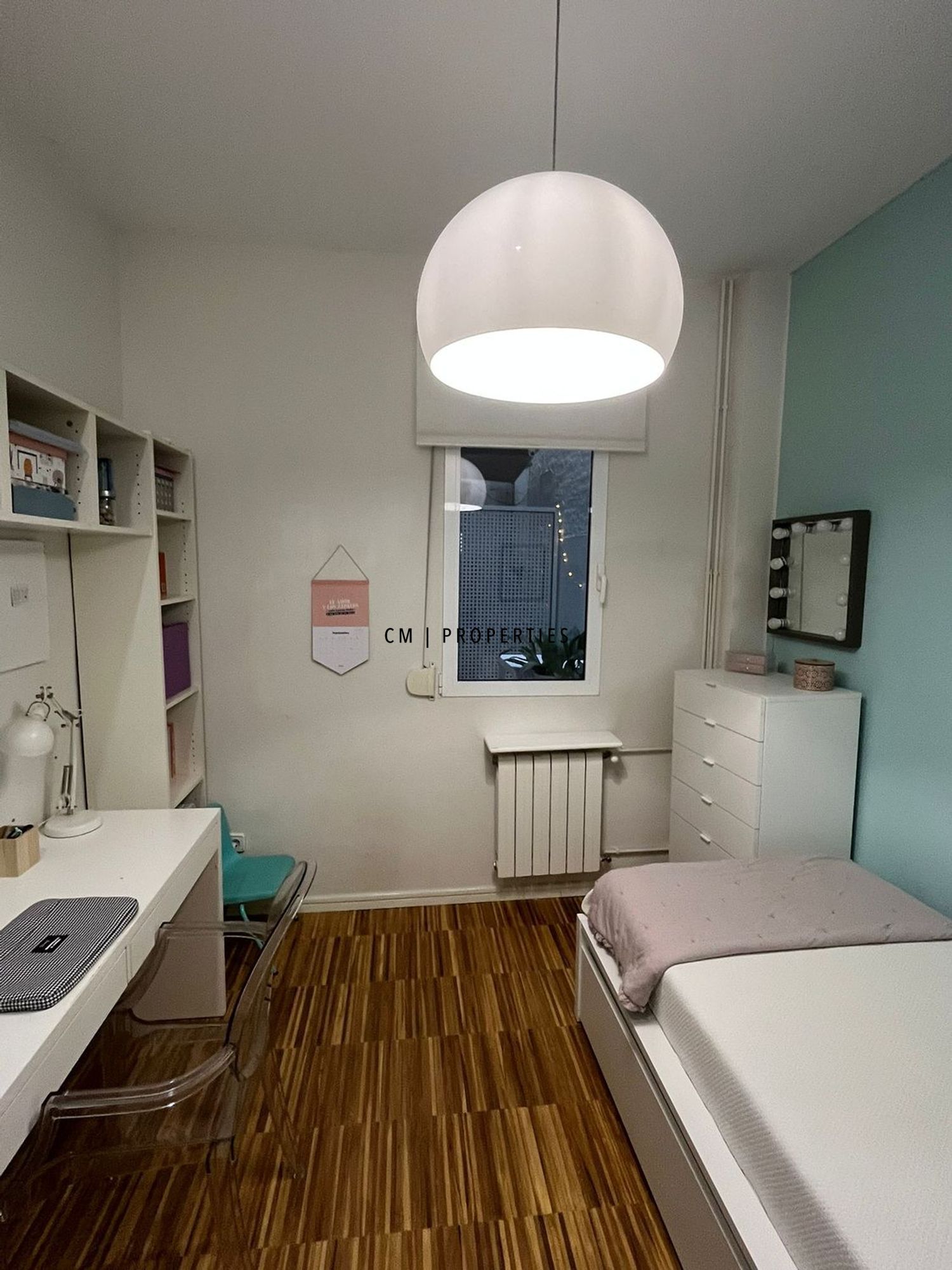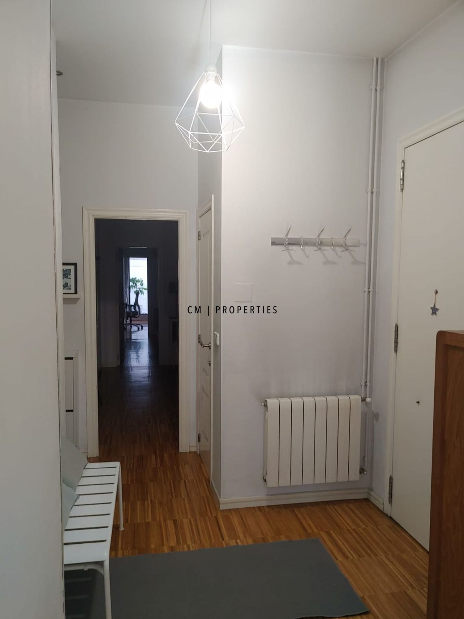 La vivienda dispone de suelo de parqué de alta calidad, calefacción por gas natural con radiadores en todas las estancias, amplios armarios en el hall de entrada y soluciones adicionales de almacenaje en la sala polivalente.